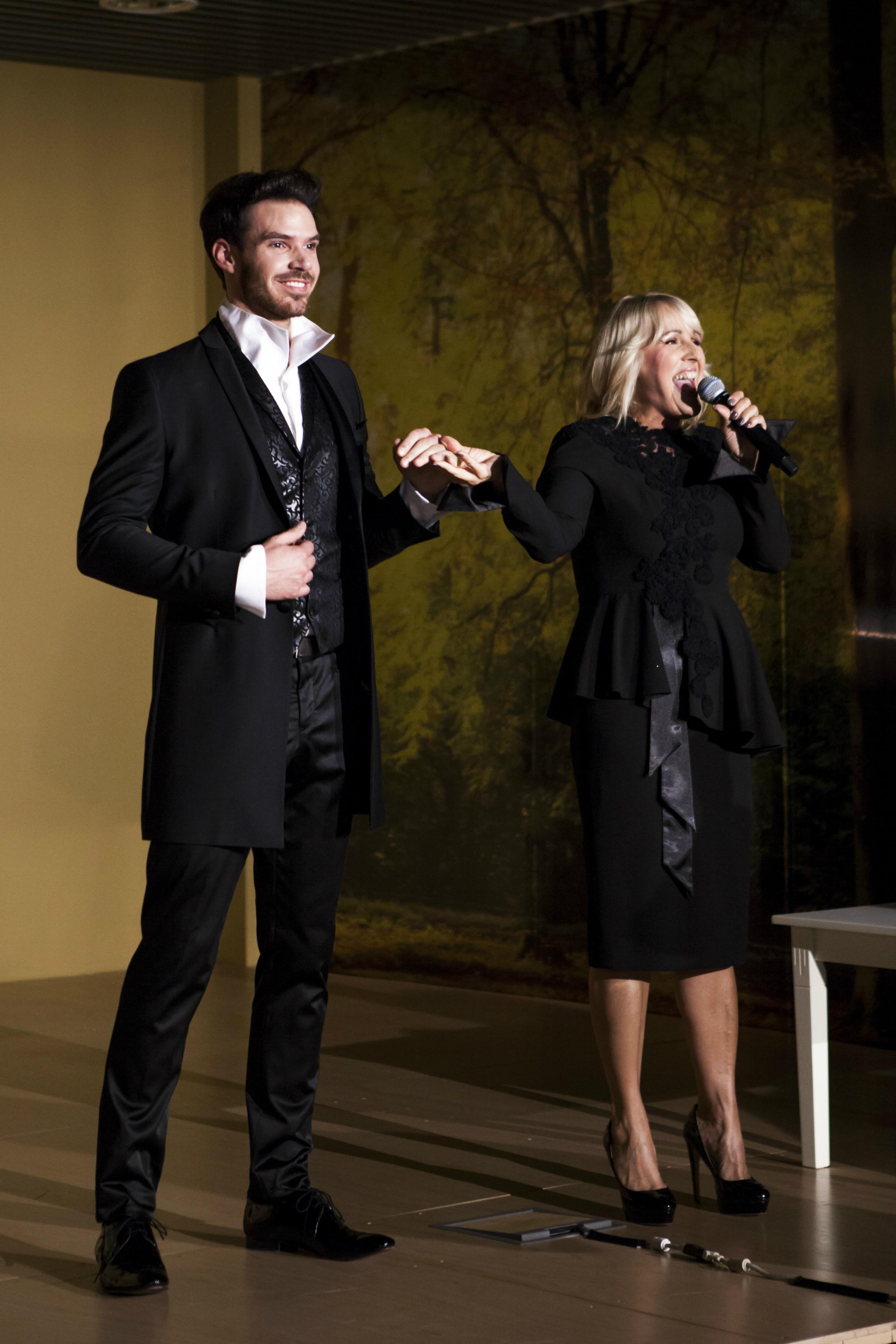 V uvodu nas je presenetila z neklasično predstavitvijo kreacij na lutkah v izložbi, ki so ob glasbeni spremljavi Alenke Godec oživele in se v domiselni koreografiji Nenna Harlekina predstavile še na odru. Da je bil korak manekenk lahkoten in udoben, so poskrbeli v Kopitarni Sevnica, kjer so izdelali zlate sandale.V nagovoru se je Maja zahvalila celotni ekipi, ki je sodelovala pri projektu. Poudarila je, da je ponosna, da so kreacije izdelane z rokami slovenskih šivilj.
